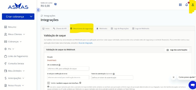 - 💳 Escolha a opção Asaas e insira o Token da API
