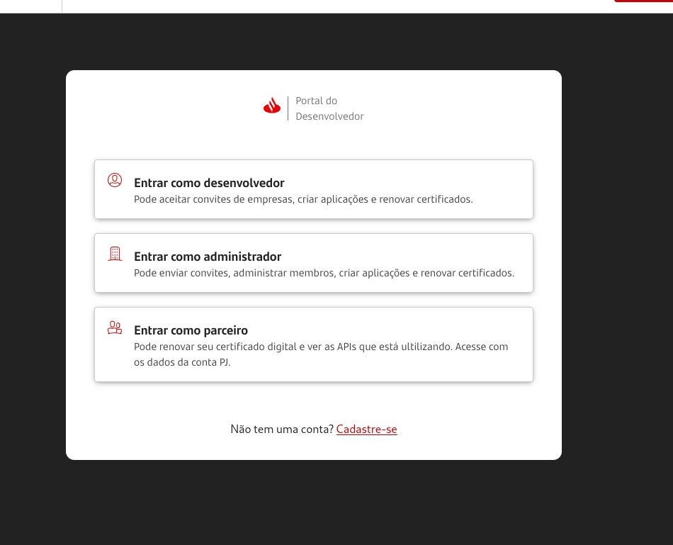 https://developer.santander.com.br/login