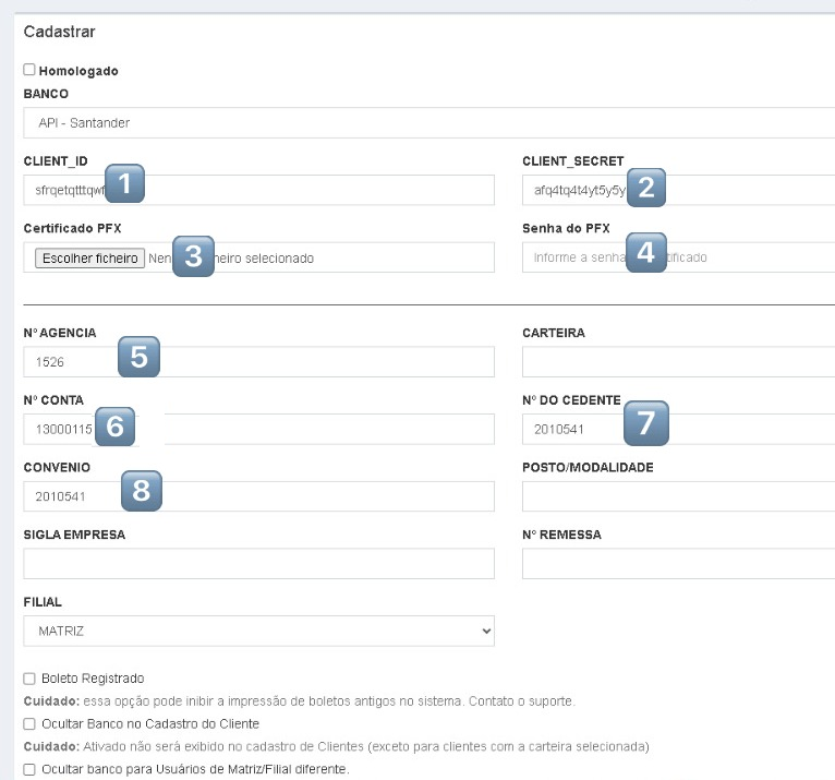 Importante: O seu cadastro/conta Santander precisa estar habilitado para cobrança via API.