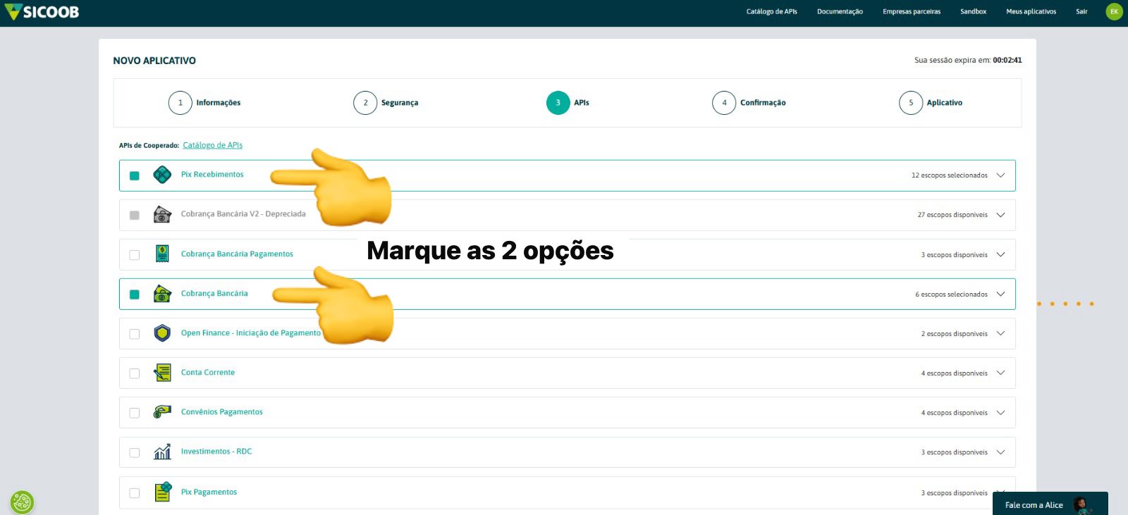 Marque a opção PIX Cobrança + Cobranças Bancárias.