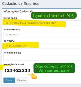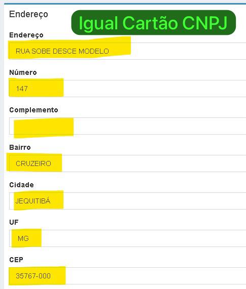 Mais Abaixo, na mesma Tela, Endereço Fiscal da Empresa:
