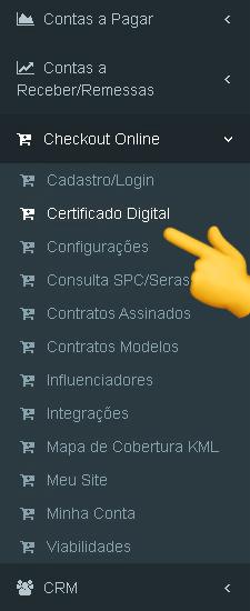MENU RECEITANET → Checkout Online → Certificado Digital