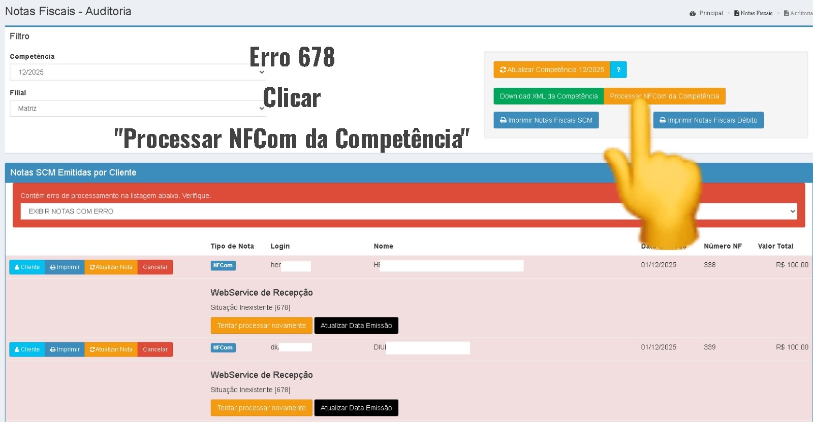 A empresa deverá Clicar para “Processar NFCom da Competência”