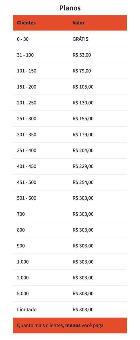 Após ultrapassar 30 clientes, o sistema gera cobrança automática: